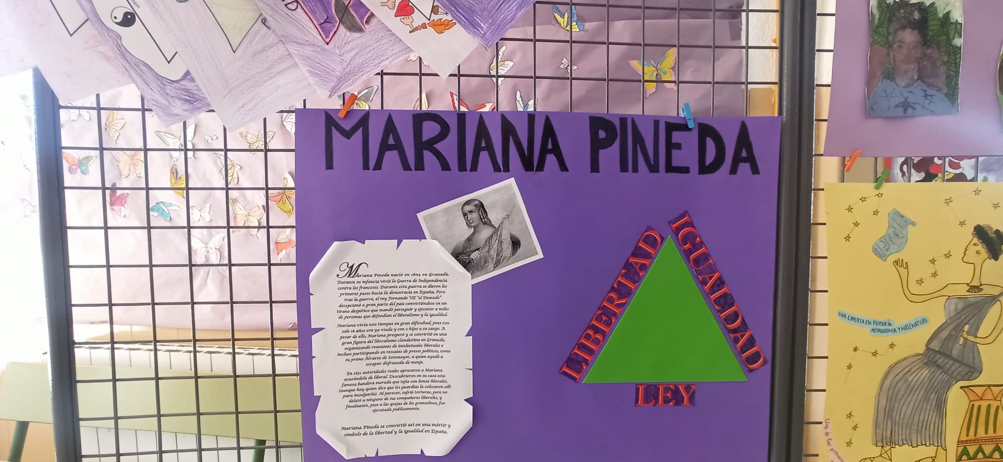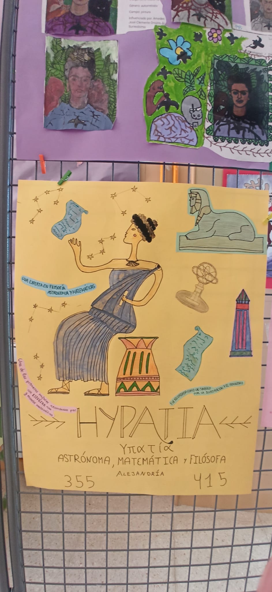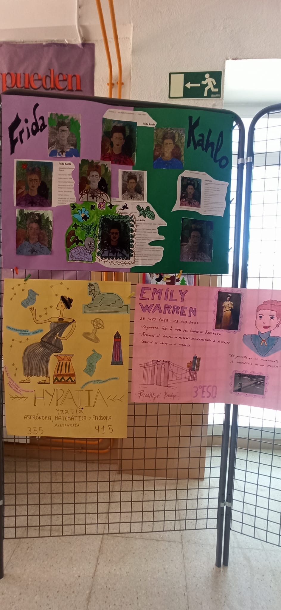Una vez que han elegido a su mentora, han realizado un mural con sus logros y datos biográficos, siendo motivo de exposición el 8M y durante el resto del mes de marzo, pues es en esta fecha cuando descubrimos que las escaleras de acceso para los grupos de tercero y cuarto se han convertido en nuestras ESCALERAS DE LAS PIONERAS, con los nombres de nuestras elegidas, formando parte de nuestra investigación y de la decoración de nuestro centro, así como bagaje cultural para todo el centro.