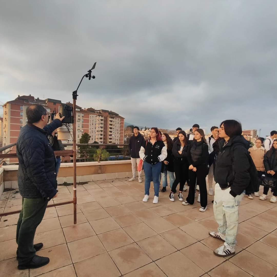 El grupo de 3 y 4ESO junto con sus partners se dirigen a primera hora la Universidad de Jaén, donde el profesor de Física, A. David Pozo nos lleva y explica las instalaciones de la estación metereológica cuyos datos el alumnado de 3° ha ido analizando en Estadísticas en la clase de mates con nuestra profe Irene. Nos da una charla sobre el tiempo y de qué manera viene determinado por diferentes factores atmosféricos. José Rodríguez, del Vicerrectorado de Estudiantes nos habla de las ofertas académicas de la Universidad y de qué manera se lleva a cabo el acceso a la misma.