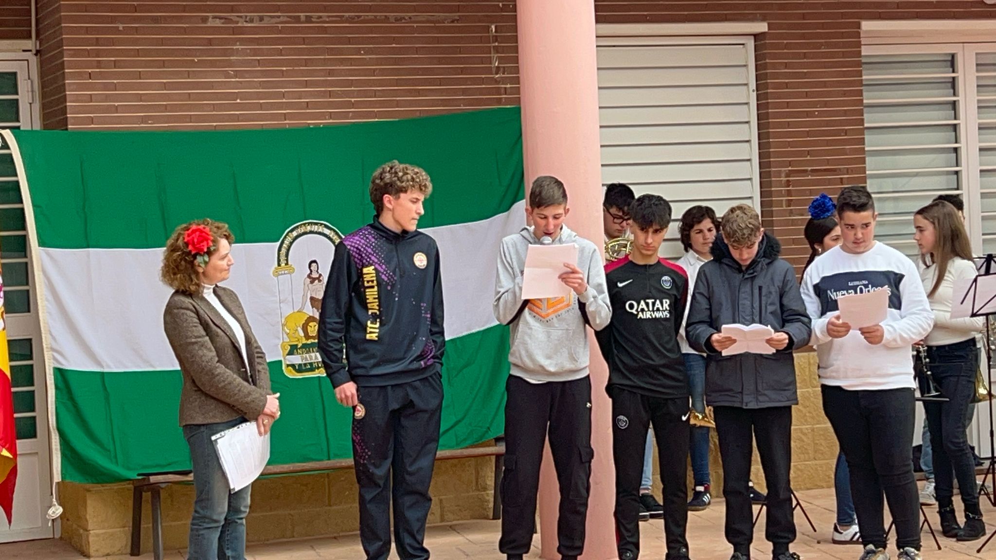 El pasado Jueves Dia 27 de febrero celebramos un acto muy especial en nuestro centro con motivo del Día de Andalucía. El acto comenzó a las 10:45 h con la presentación de nuestra compañera María Julia Parras Cañada, jefa del Dpto. de Ciencias Sociales, y contamos con la presencia de representantes del Ayuntamiento de Jamilena.