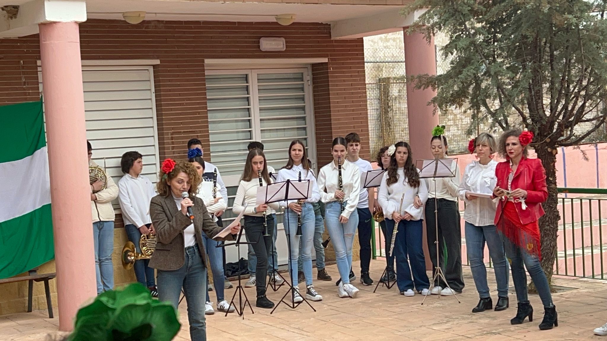 La música y la literatura fueron protagonistas: nuestro alumnado interpretó el Himno de Andalucía dirigido por la profesora de música Mariam Ortega Susi, y desde el Dpto. de Lengua, nos emocionamos con un recital de poemas y lecturas dedicadas a nuestra tierra.