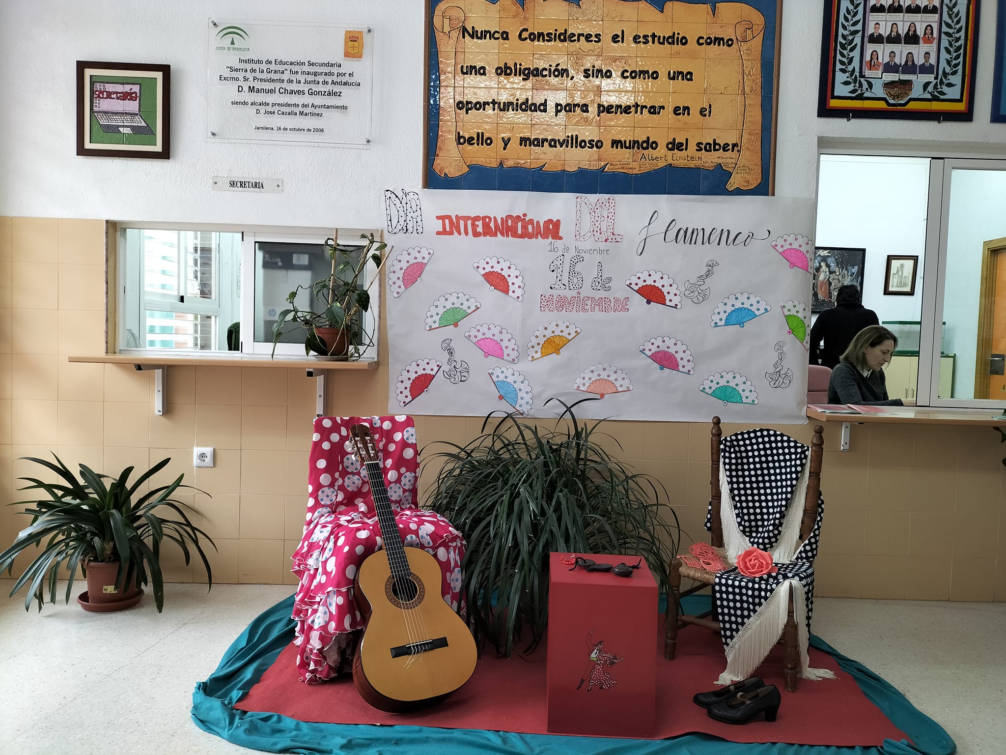 En la entrada del instituto, nuestros alumnos y alumnas han podido disfrutar de una exposición cargada de simbolismo flamenco: