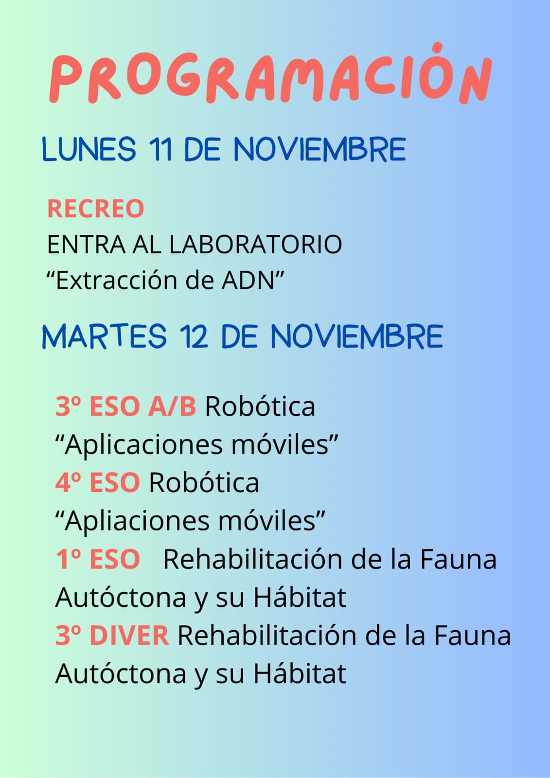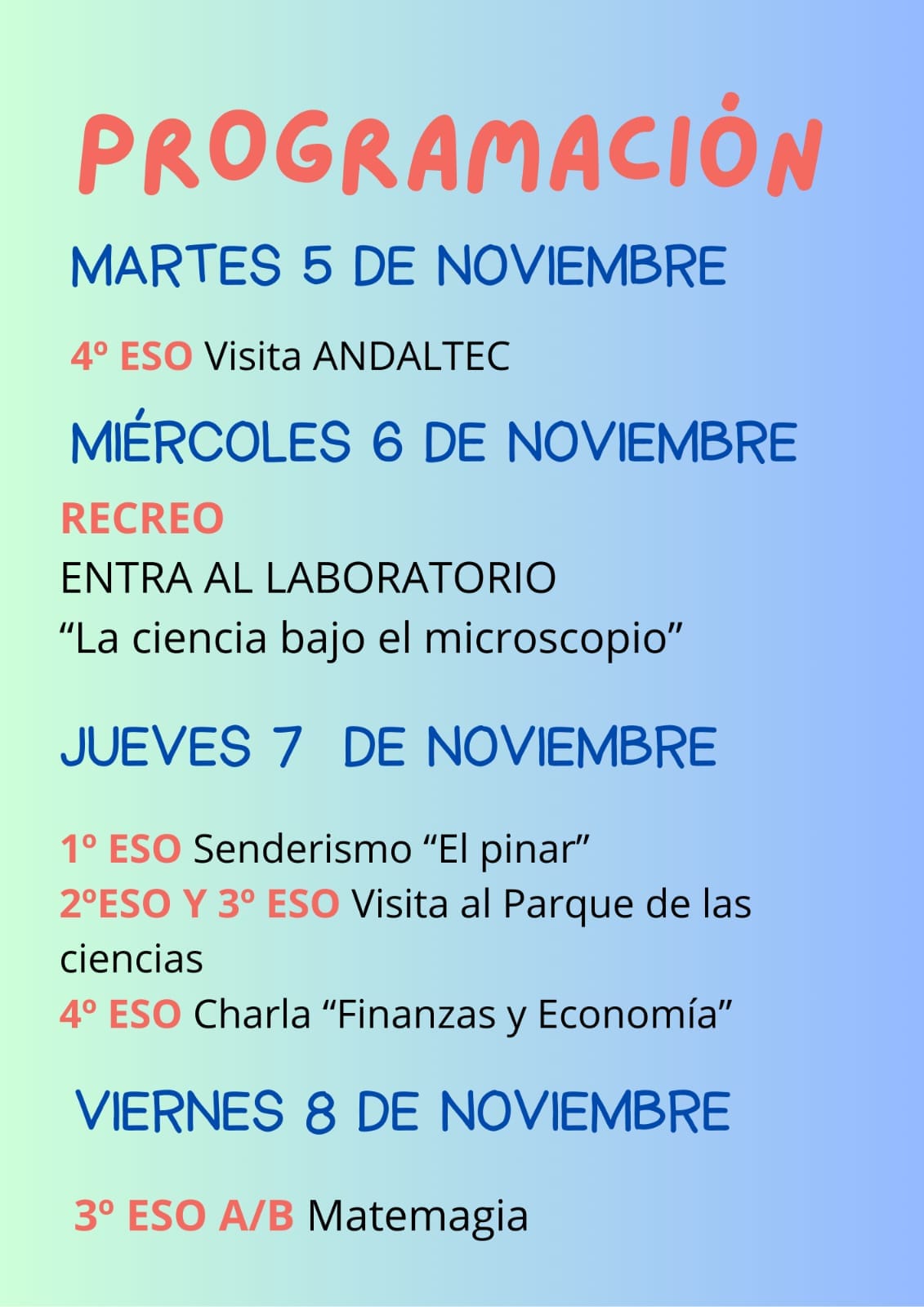 Del 5 de noviembre al 15 de noviembre, se ha celebrado una SEMANA DE LA CIENCIA llena de experimentos, talleres y sorpresas científicas para todas las edades