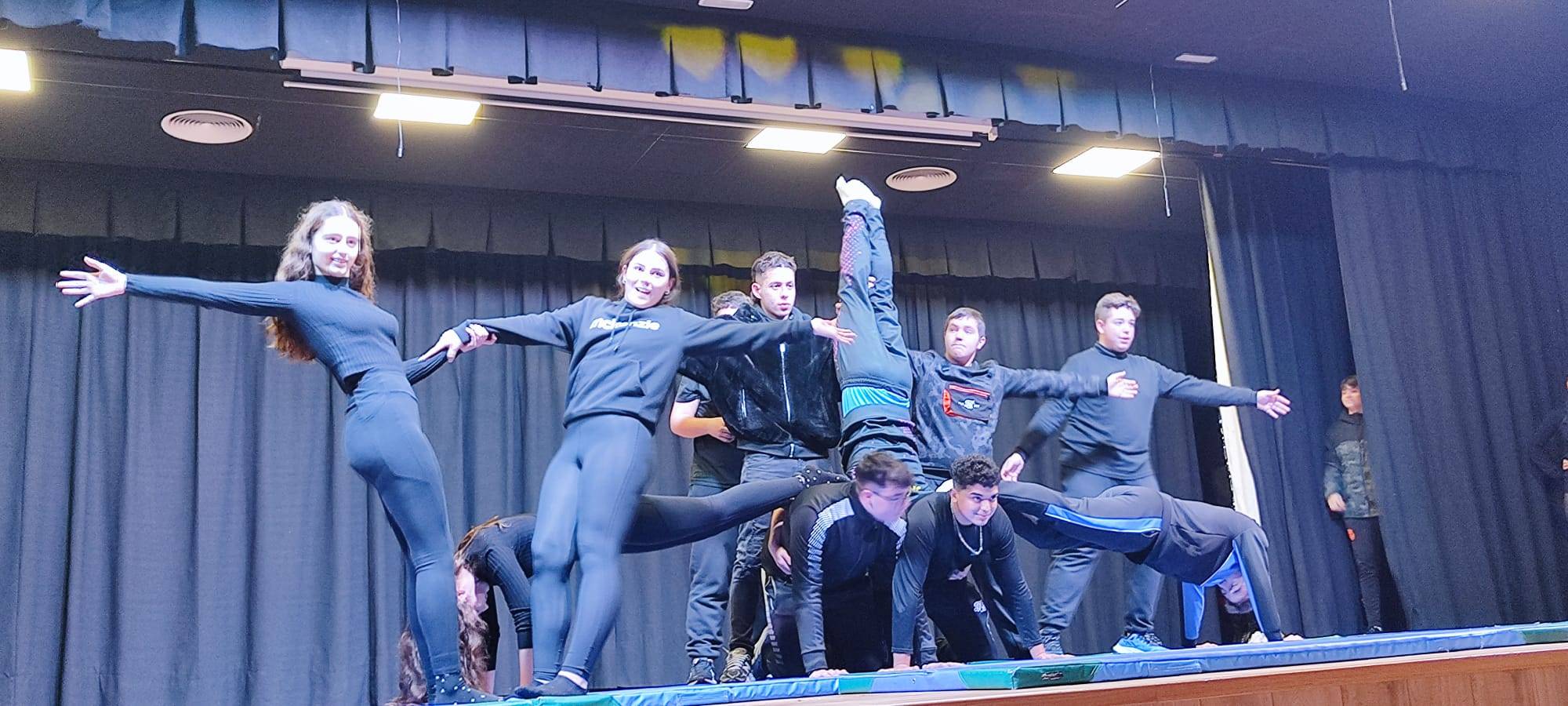La jornada concluyó en el teatro con una muestra artística conjunta, coordinada por Alberto Parejo y Mariam Ortega, en la que participaron alumnado y profesorado a través de distintas propuestas escénicas, musicales y deportivas. En este acto se contó también con la valiosa participación del CEIP Padres Rejas, cuyo alumnado de 6º de Primaria ofreció una actuación con trompo tradicional y un baile, aportando un emotivo ejemplo de convivencia entre etapas educativas. Desde aquí, nuestro agradecimiento por su implicación y colaboración.