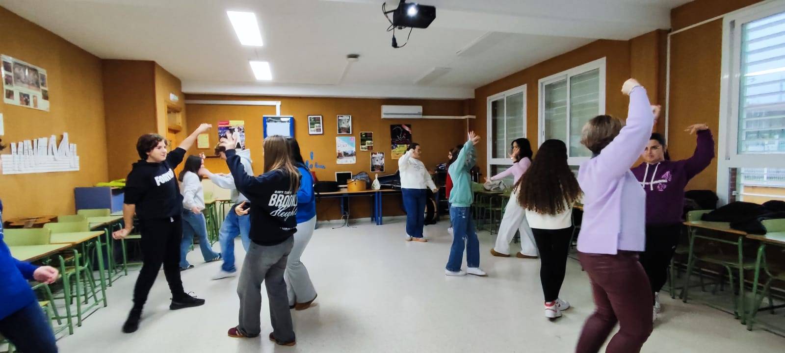 El recibimiento oficial tuvo lugar hoy en el centro con una jornada dedicada al encuentro entre los participantes. Las actividades de bienvenida y las dinámicas de convivencia fueron preparadas por Alberto Parejo, profesor de Educación Física, y Mariam Ortega, profesora de Música, combinando trabajo cooperativo, expresión corporal y música como herramientas para facilitar la interacción y la creación de lazos entre el alumnado.